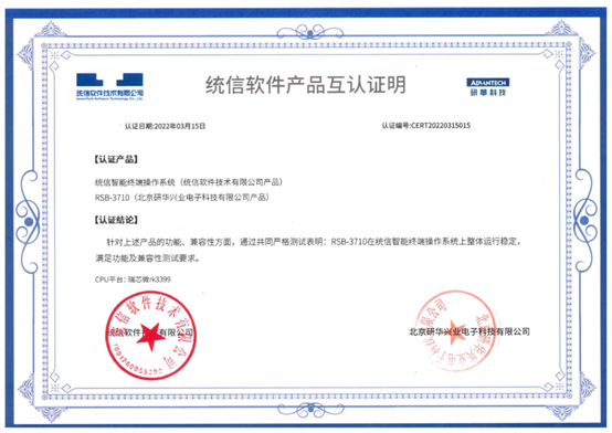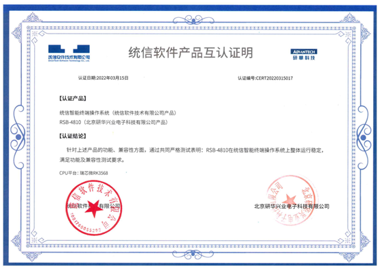 统信智能终端操作系统具有灵活定制、高效低耗的特点,在产品设计、操作体验上更加注重国人的手势触摸使用习惯,支持全系列CPU架构,具有良好兼容性、丰富软硬件生态、安全可信等特性,专为平板、移动终端、智慧屏、穿戴设备、自助设备等智能终端量身打造,可服务于金融、医疗、政府、教育、能源等行业,支撑各行业对操作系统的场景化需求。本次研华与统信软件进行互认证的产品,均采用瑞芯微方案,分别为两款核心模块(Computer-on-Module)-ROM-5780B1和ROM-5780,以及三款单板电脑(Single Board Computer)-RSB-4810、RSB-4710、RSB-3710。